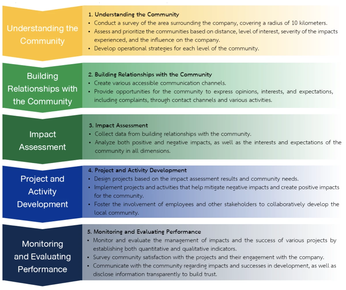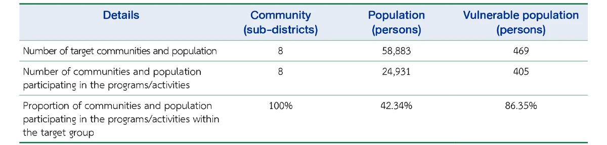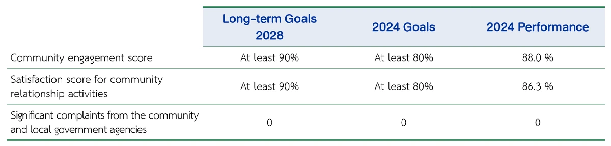 In 2024, the company implemented a total of seven main community development and engagement projects, along with nine activities, within the target community area encompassing a radius of 10 kilometers (including 8 sub-districts, 43 villages, 24 schools, and 37 temples), with a total population of 58,883 people. A total of 24,931 participants from the community took part in these activities, representing 42.34% of the target group.