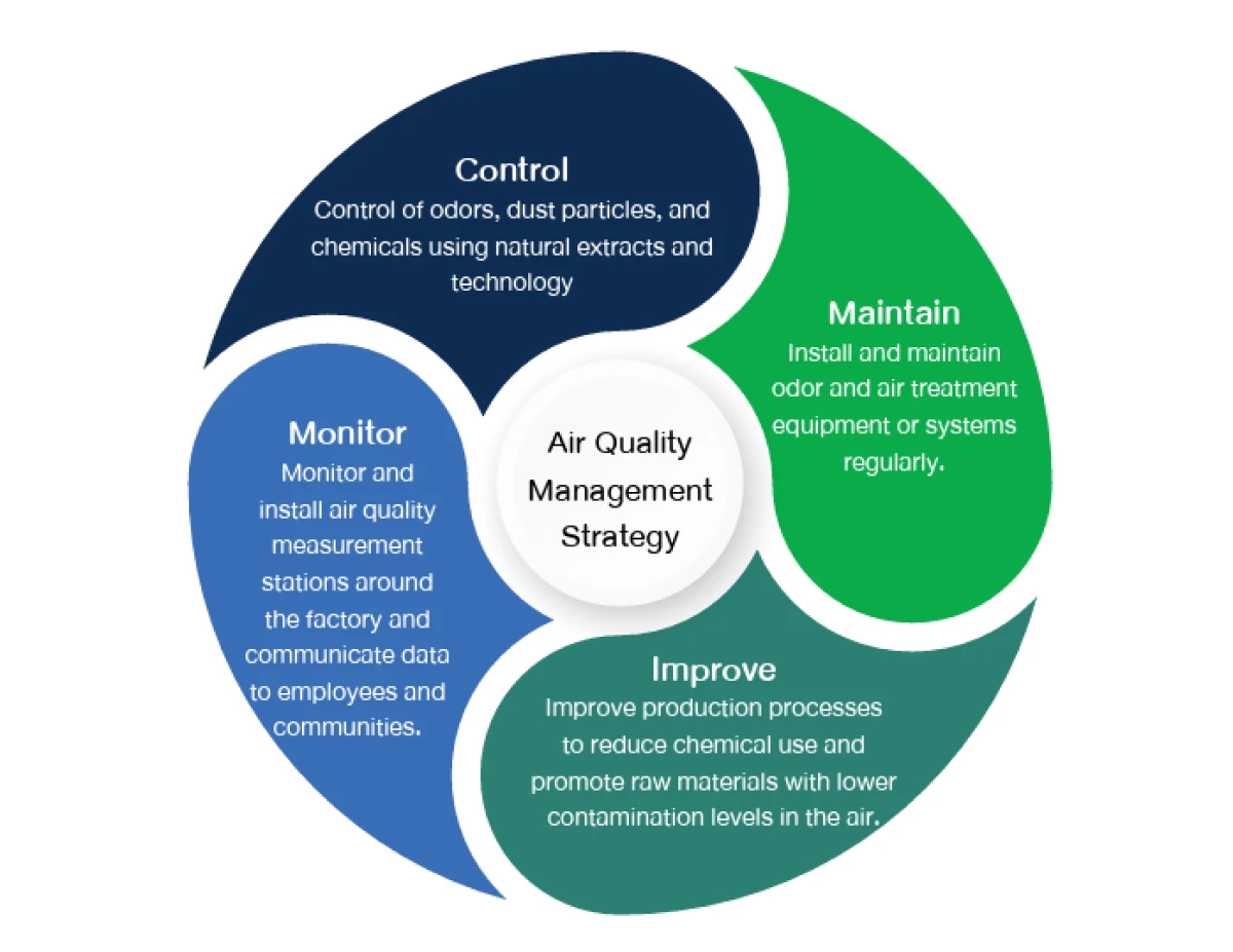 The company is committed to continuously developing its odor and air quality management processes by implementing a strategy focused on 'Control, Maintain, Improve, and Monitor.' This strategy emphasizes the integration of modern technology and appropriate innovations to enhance pollution control efficiency. Additionally, the company promotes employee and community participation in the management of odor and air quality to create strong and sustainable cooperation in environmental protection.