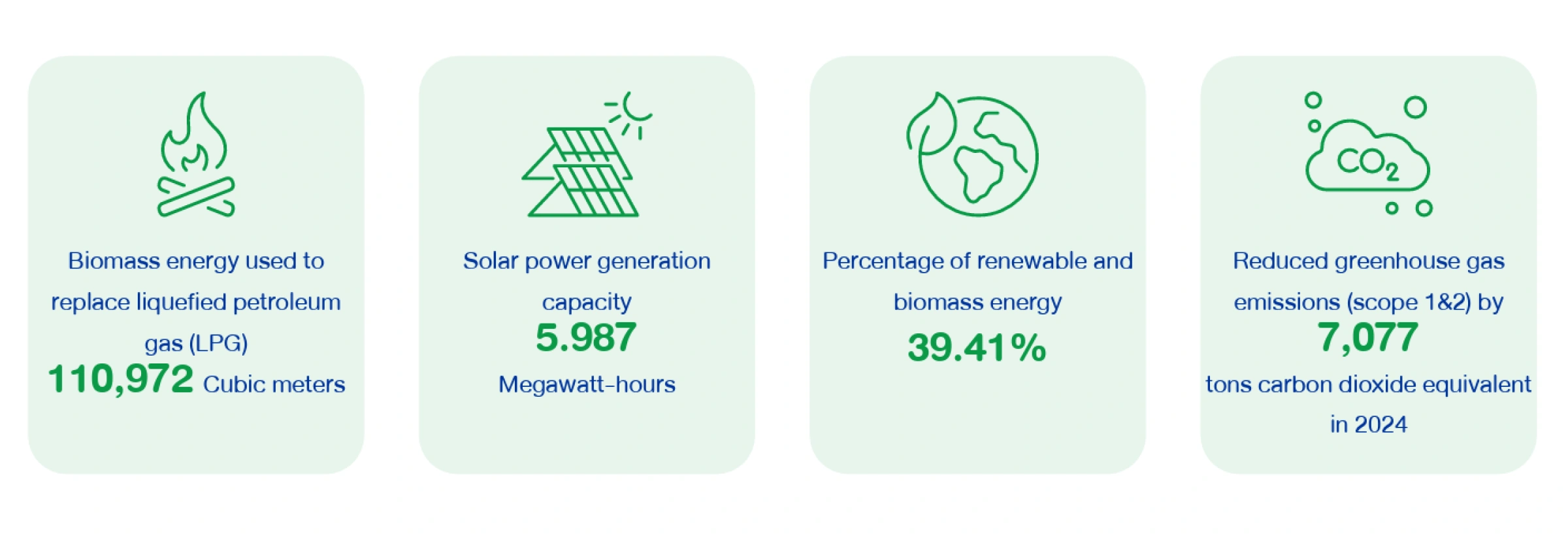 | Increase the use of renewable energy and biomass energy | Expand production capacity and the use of renewable energy, biomass, and solar energy to reduce dependence on fossil fuels and electricity from non-renewable sources. | |||