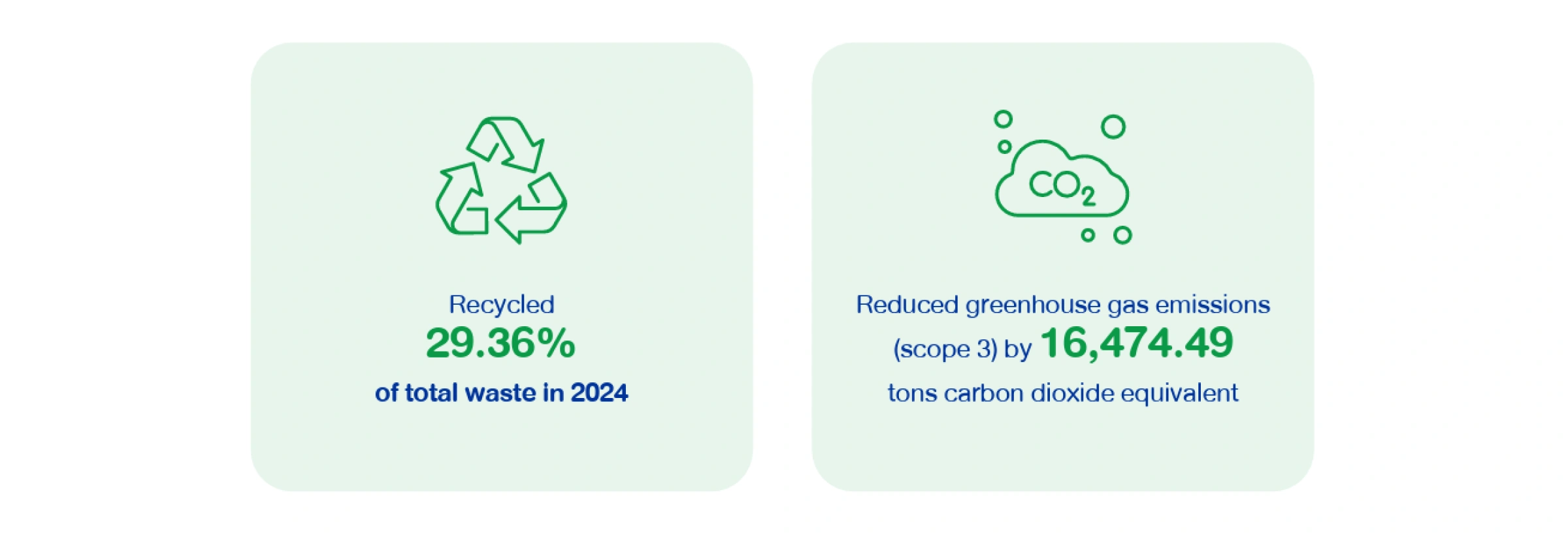 | Manage resources and waste efficiently | Utilize resources efficiently and reduce waste generation at the source by promoting recycling and resource circulation, as well as effective waste management to minimize landfill disposal. | |||