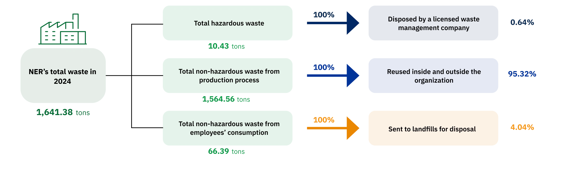 | Percentage of waste to landfill to total waste | 0% | Not exceeding 5% | 4.04% |