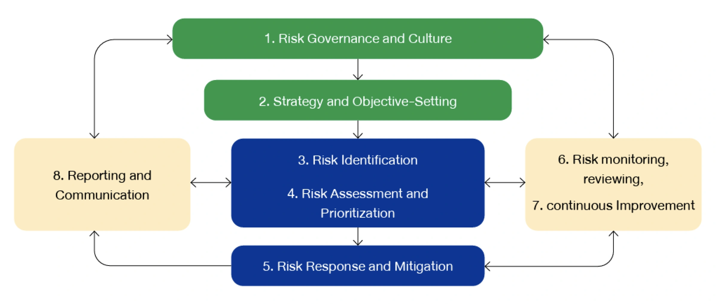 The company has established a 'Risk Management Policy' and a risk management manual that are reviewed and updated annually to align with current circumstances. In terms of enterprise risk management, the company utilizes the risk management framework from the Committee of Sponsoring Organizations of the Treadway Commission (COSO), incorporating both the COSO ERM 2017 (Enterprise Risk Management Integrating with Strategy and Performance) and COSO ESG 2018 (Enterprise Risk Management – Applying Enterprise Risk Management to Environmental, Social, and Governance-related Risks) as guidance for its corporate risk management practices, tailored to fit the company’s operations to ensure risk management at all levels and connection throughout the organization.