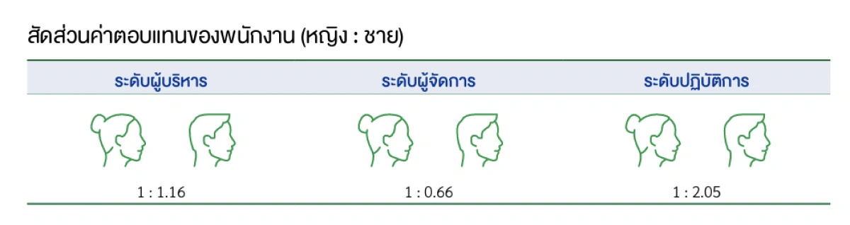 บริษัท ฯ จ่ายค่าตอบแทนอย่างเสมอภาคโดยยึดหลักความเป็นธรรมตามปริมาณและลักษณะงานที่ทำโดยไม่แบ่งแยกเพศหรือสถานภาพของพนักงาน ยกเว้นกรณีที่ลักษณะงานมีความจำเป็นที่ต้องใช้บุคลากรเฉพาะในการปฏิบัติงาน สำหรับสตรีมีครรภ์ บริษัทฯ ปฏิบัติตามกฎหมายแรงงานอย่างเคร่งครัด โดยไม่มีนโยบายบังคับตรวจการตั้งครรภ์หรือคุมกำเนิดเพื่อประโยชน์ในการว่าจ้าง รวมถึงไม่มีการบังคับให้ออกจากงาน