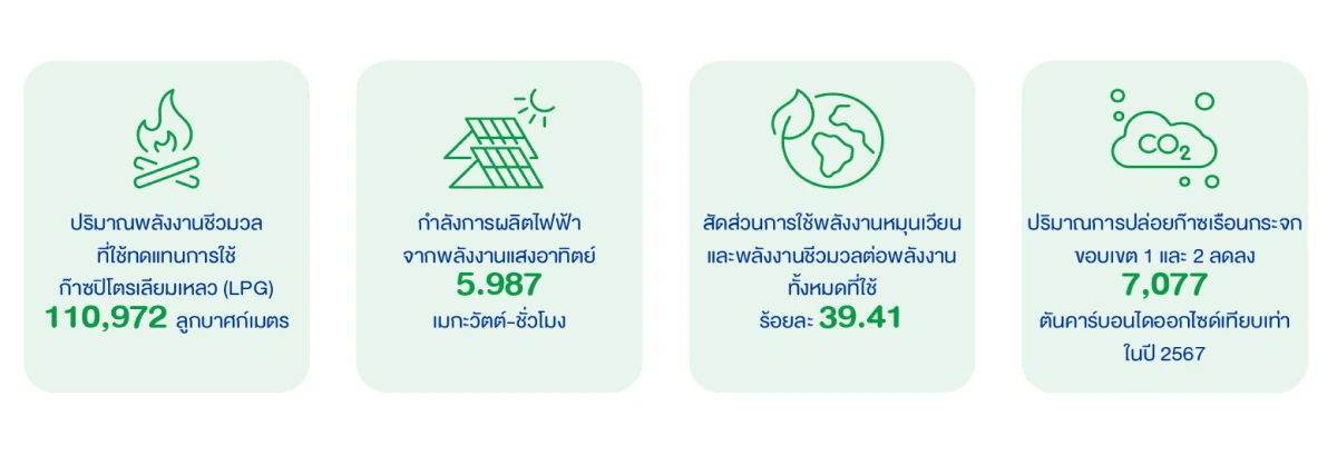 และบริษัท ฯ ได้จัดทำรายงานการปล่อยและการดูดกลับก๊าซเรือนกระจกขององค์กรระหว่างวันที่ 1 มกราคม ถึง 31 ธันวาคม 2567 โดยได้รับการทวนสอบข้อมูลโดย บริษัท อีซีอีอี จำกัด ซึ่งเป็นผู้ทวนสอบที่ได้รับการขึ้นทะเบียน ปัจจุบันอยู่ในระหว่างการขอรับรองและขึ้นทะเบียนคาร์บอนฟุตพริ้นท์ขององค์กรจากองค์การบริหารจัดการก๊าซเรือนกระจก (องค์การมหาชน)