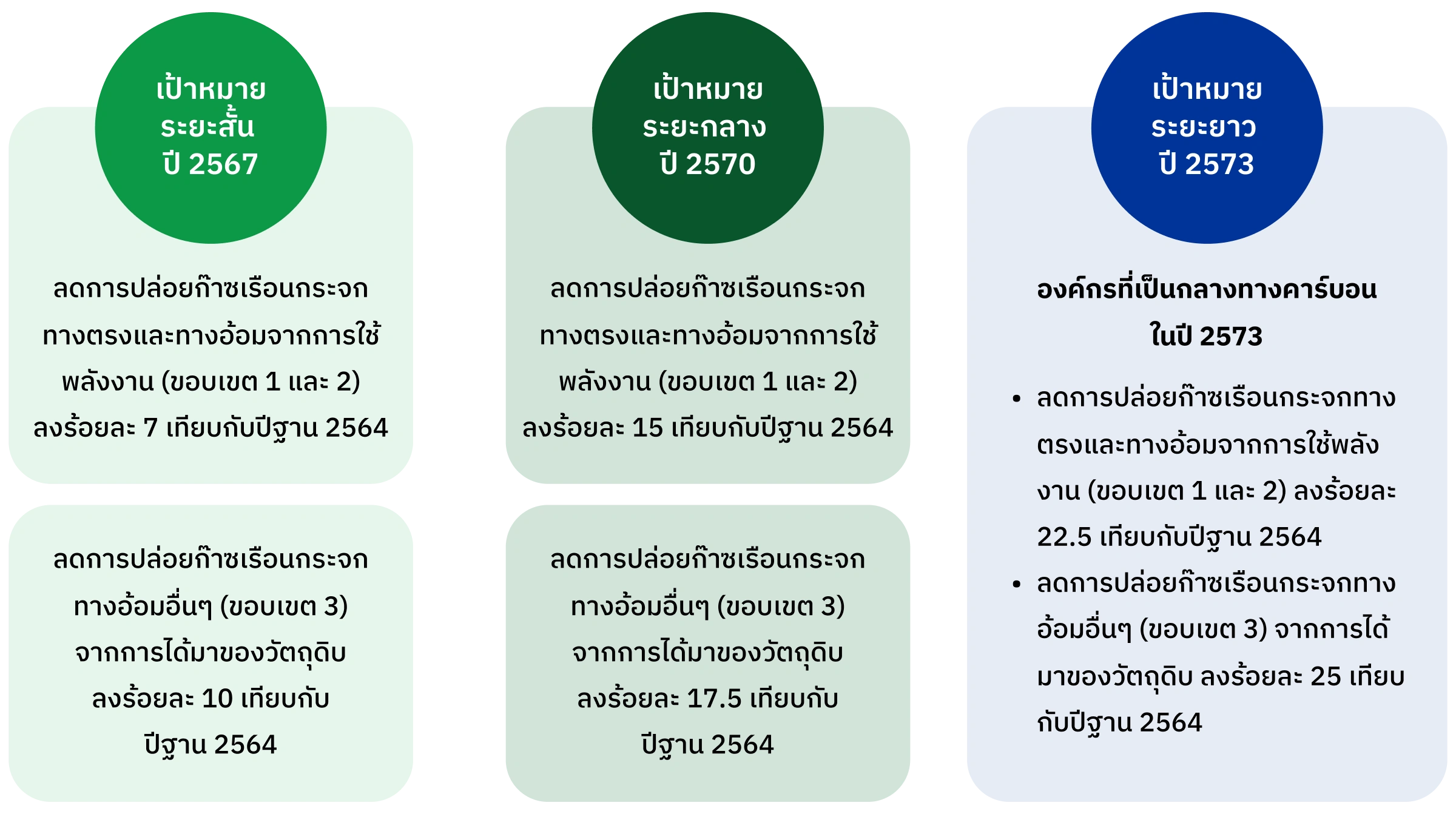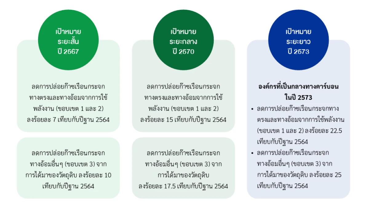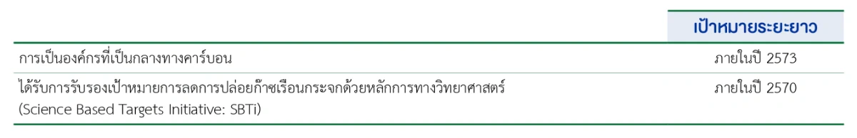 บริษัท ฯ มีความมุ่งมั่นที่จะก้าวไปสู่การเป็นองค์กรที่เป็นกลางทางคาร์บอนในปี 2573 จึงได้กำหนดเป้าหมายขององค์กรเพื่อมุ่งสู่เป้าหมาย ดังนี้